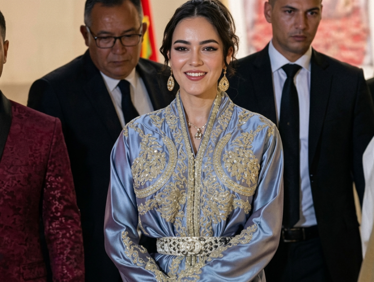 Lors de cet événement, la princesse Lalla Khadija a attiré l’attention avec une tenue traditionnelle, portant un caftan marocain qui reflète l’authenticité du vêtement traditionnel à travers ses détails et ses broderies.